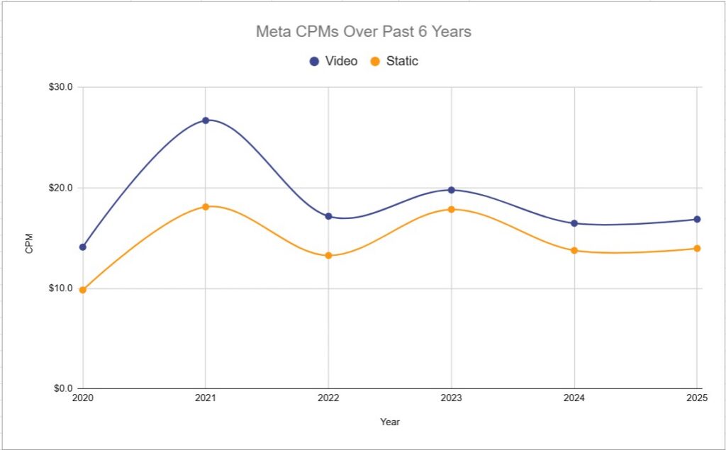 Also worth noting that static media continues to come in at a bit lower CPM than video media. This is a steady trend that is consistent throughout all 6 years of our data.