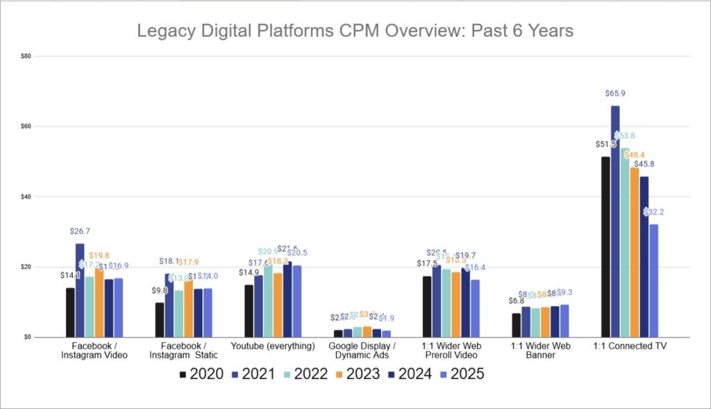 We are committed to rigorously evaluating the trends in this ever-changing landscape, and to helping our clients make better media plans by using this data to hone projections in our proposals. There are some wild fluctuations in our 2025 data set, and we tend to be a bit conservative in adjusting our projections so as to avoid making large mistakes when media planning. For example, we aren’t going to take 1:1 CTV projected price all the way down to our 2025 data average of a $33 base CPM. We believe that would run the risk of undersaturating an important part of our media mix if 1:1 prices were to normalize. All of our learnings and price adjustments will also be incorporated into our Media Buying Tool to enhance its projections as well.